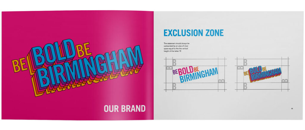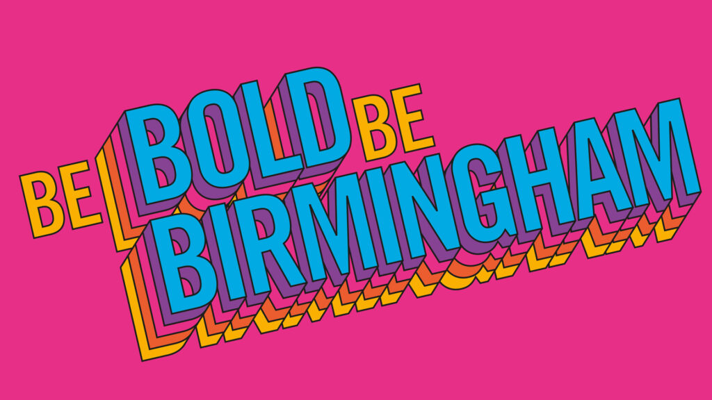 The B represented both Bold and Birmingham, directly aligning with the city’s wider “Be Bold” positioning. Designed to feel as though it was coming out towards the viewer, the letterform became a confident, forward-moving symbol — capturing energy, pride and anticipation.