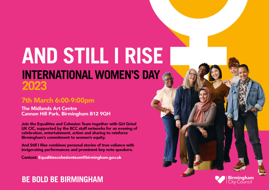 Flyer advertising an International Women’s Day event at the MAC (Midlands Art Centre) Birmingham