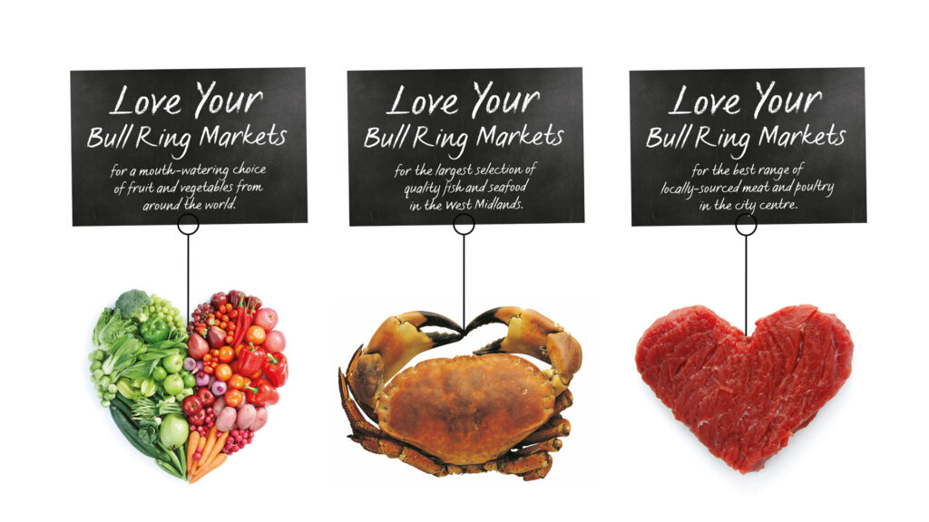 This idea evolved through sketches and concept development into a full brand and promotional campaign. The work was rolled out across the city and market locations, and I produced all point-of-sale materials for the BBC Good Food Show at the Birmingham National Exhibition Centre (now bp pulse LIVE).